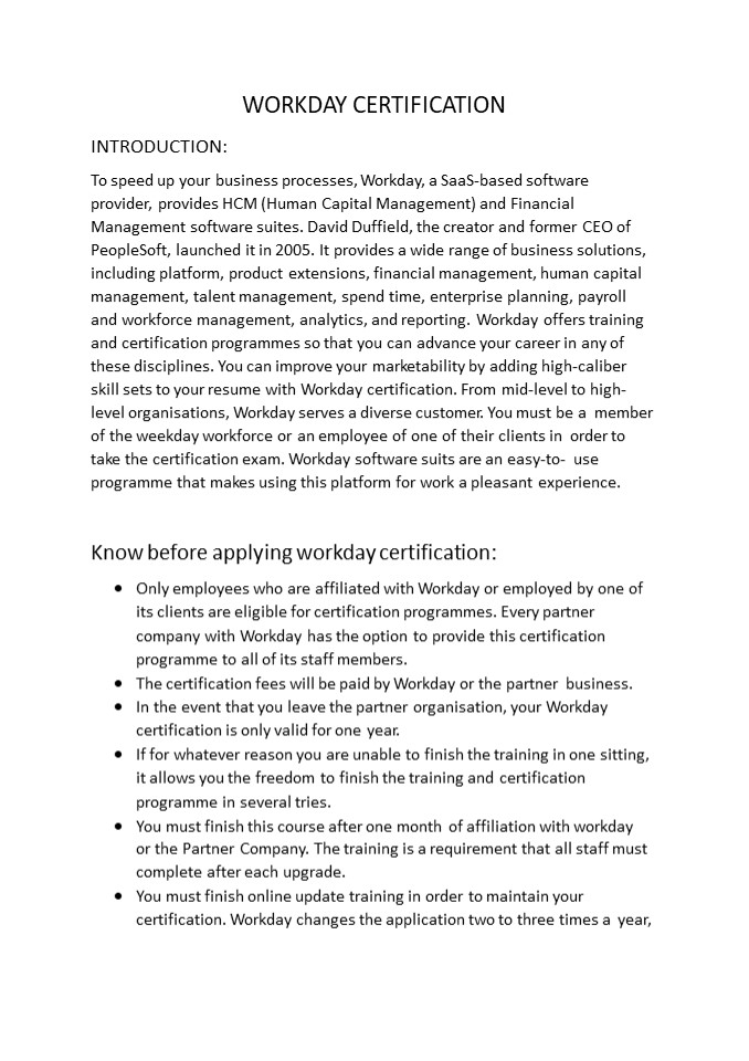 Title: Workday certification