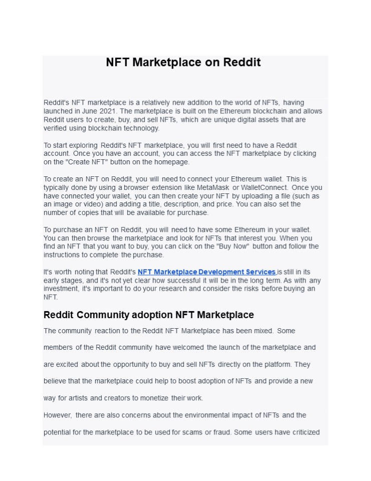 Title: NFT Marketplace on Reddit