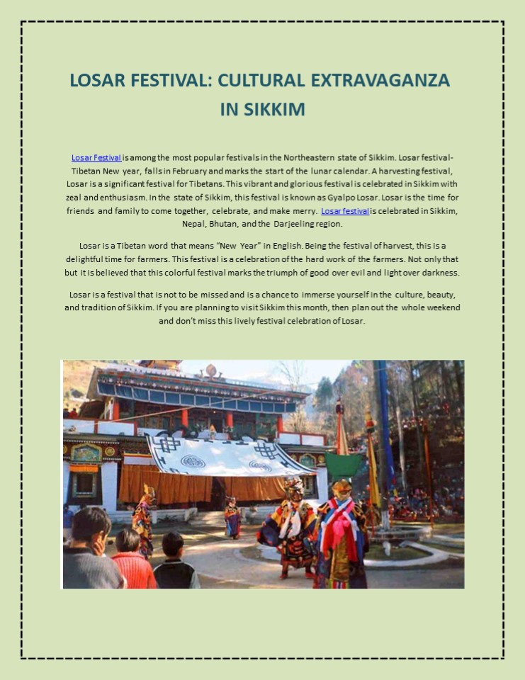 LOSAR FESTIVAL IN SIKKIM Losar Festival is among