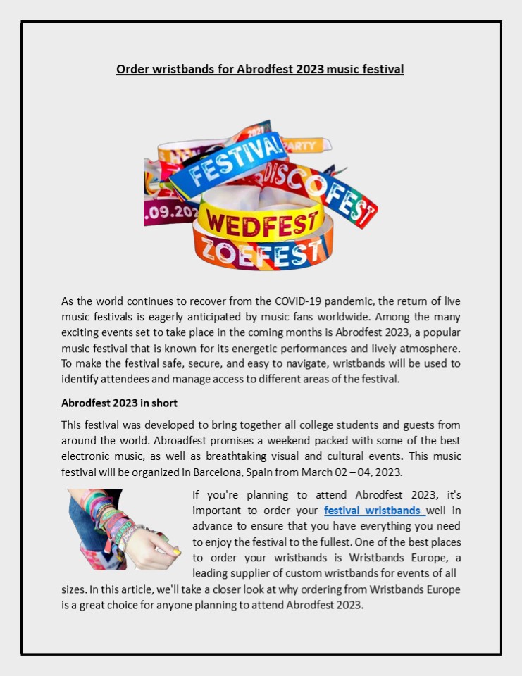 Title: Order wristbands for Abrodfest 2023 music festival (1)