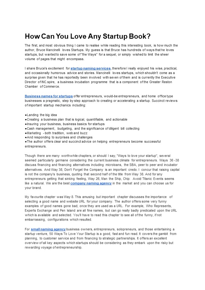 How Can You Love Any Startup Book? PowerPoint PPT Presentation