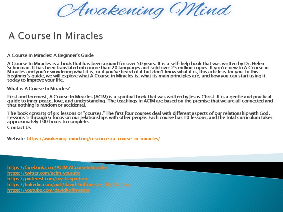Miracles?A Course In Miracles (ACIM) is a