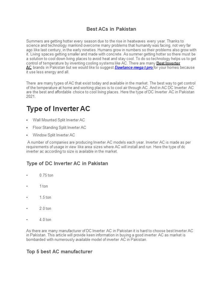 Best ACs in Pakistan PowerPoint PPT Presentation