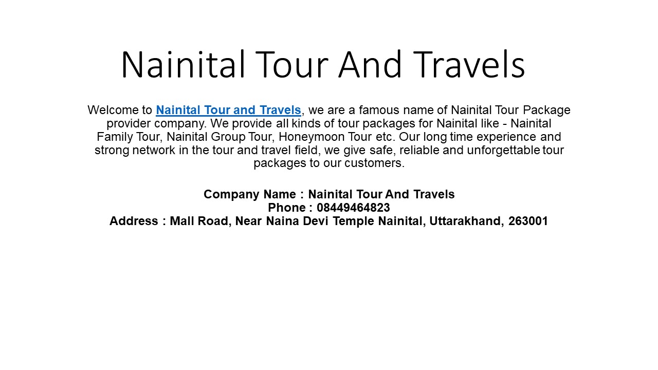 Nainital Tour And Travels PowerPoint PPT Presentation
