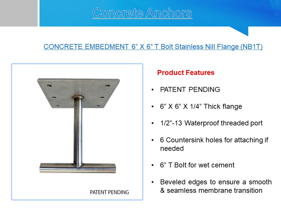 CONCRETE EMBEDMENT 6 X 6 T Bolt Stainless Nill