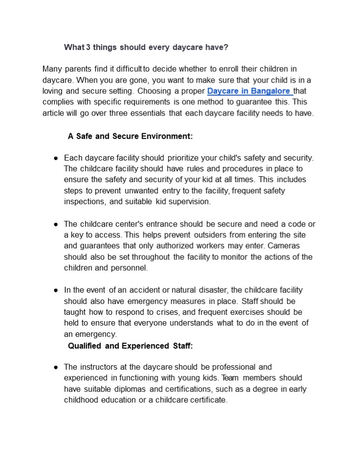 Title: What 3 things should every daycare have?