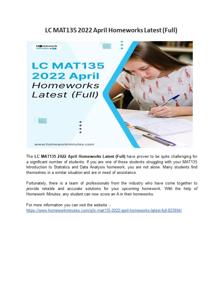 Title: LC MAT135 2022 April Homeworks Latest (Full)