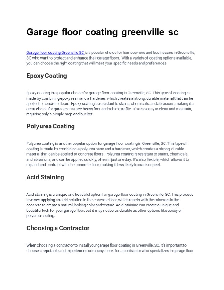 Garage ?oor coating Greenville SC is a popular