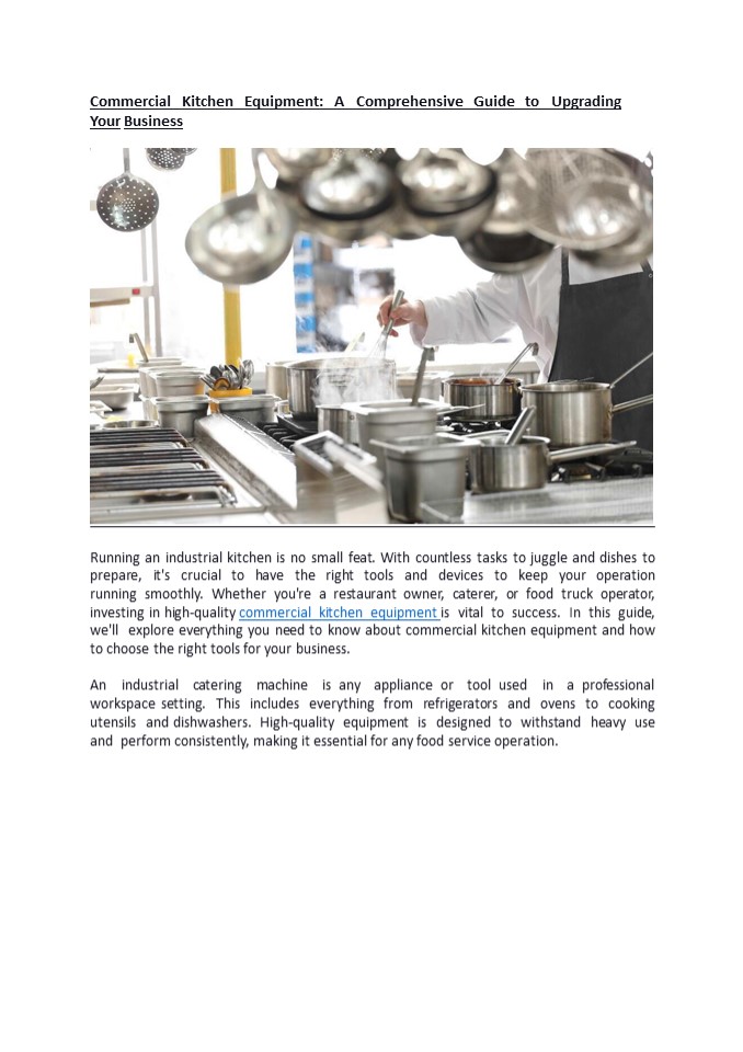 Title: Commercial Kitchen Equipment: A Comprehensive Guide to Upgrading Your Business