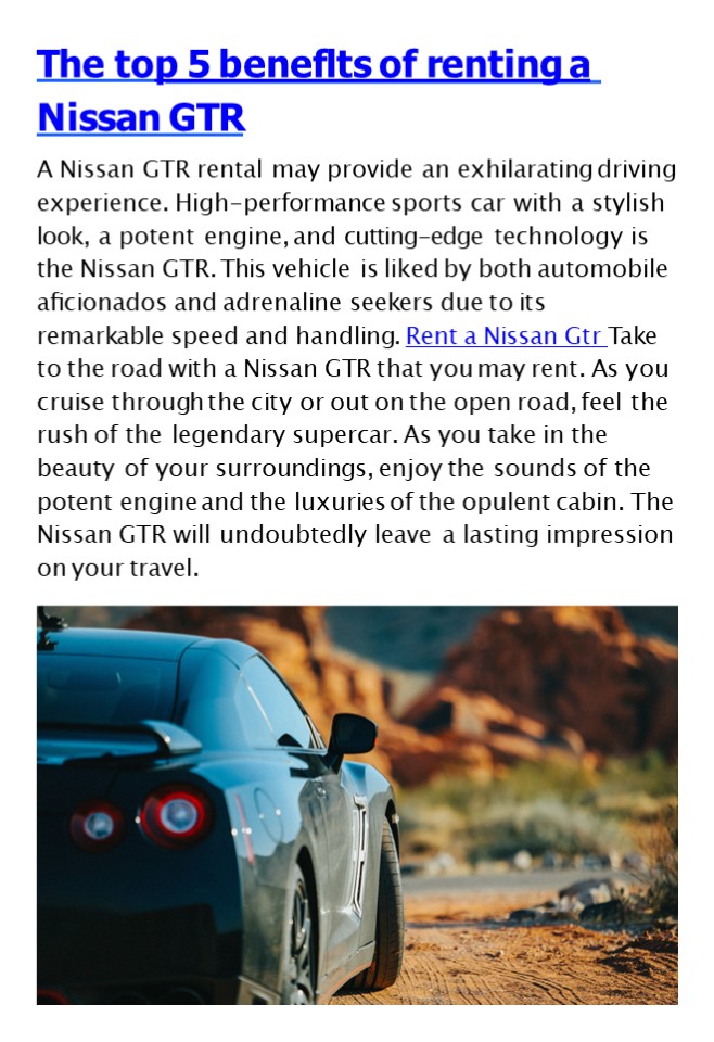 Title: The top 5 benefits of renting a Nissan GTR