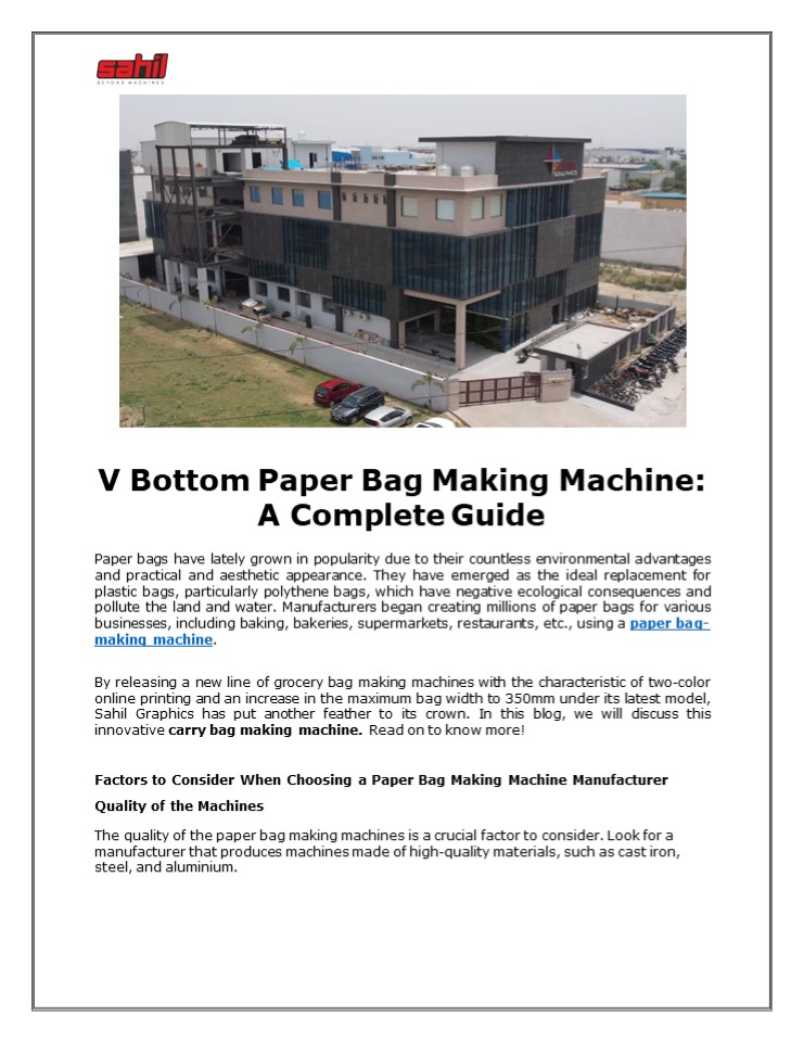Title: V Bottom Paper Bag Making Machine: A Complete Guide