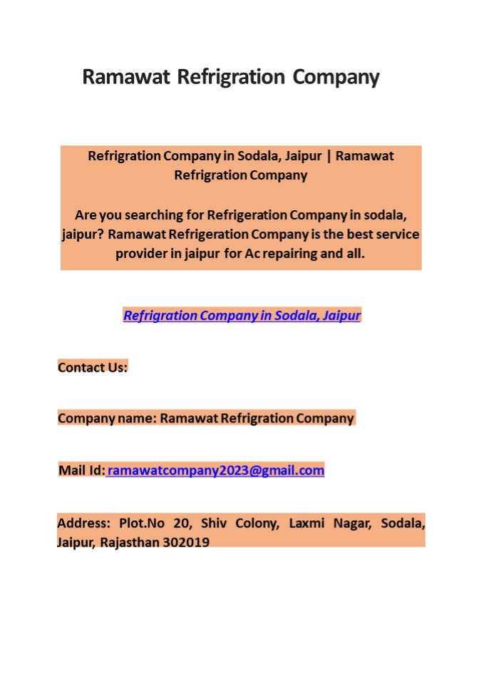 Title: Refrigration Company in Sodala, Jaipur | Ramawat Refrigration Company