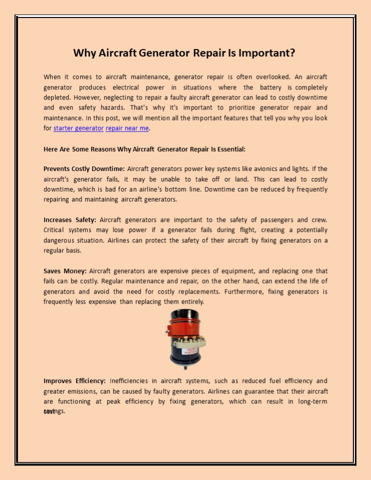 costly fines and penalties. - Steps to Maintain Aircraft Generator