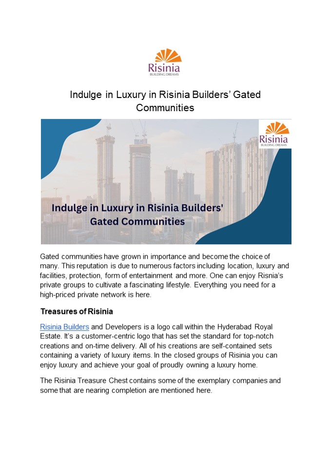 Title: Indulge in Luxury in Risinia Builders’ Gated Communities