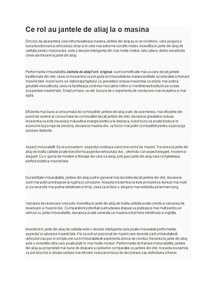 1Ce rol au jantele de aliaj la o masina Dincolo de