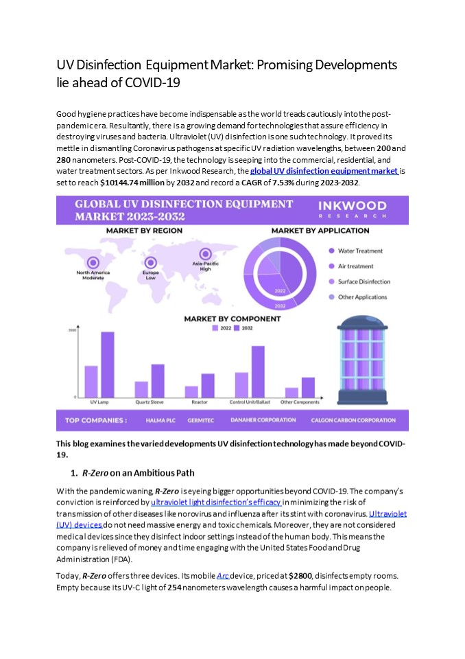 Title: Global UV Disinfection Equipment Market Research Analysis