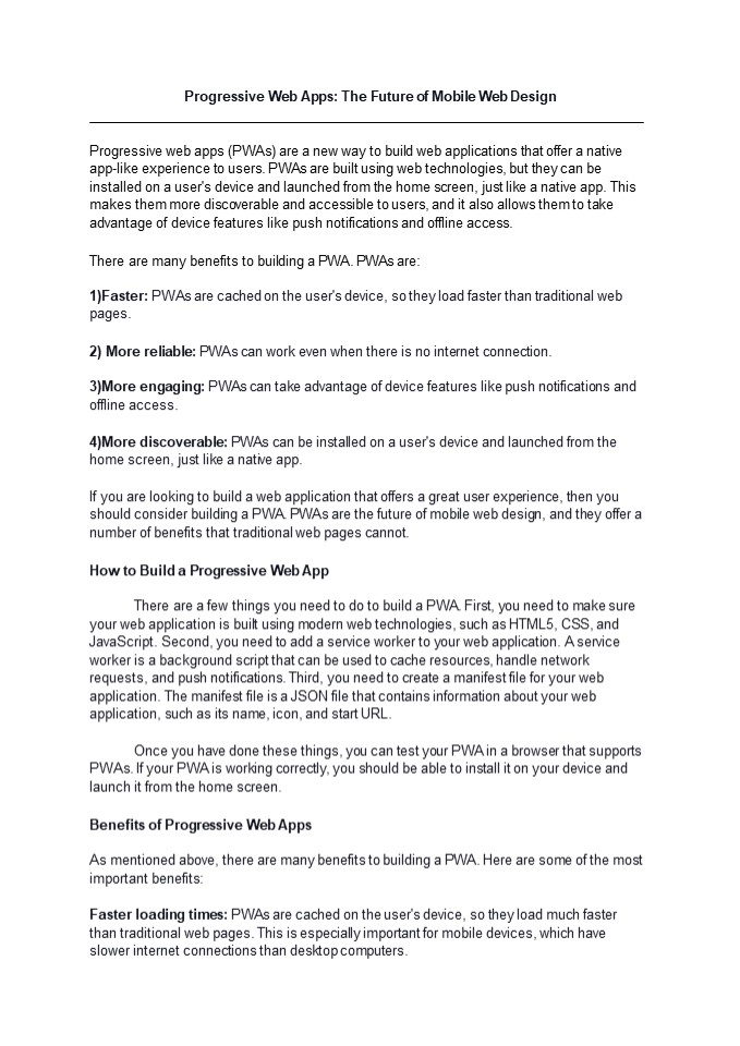 users. Conclusion Progressive web apps are the