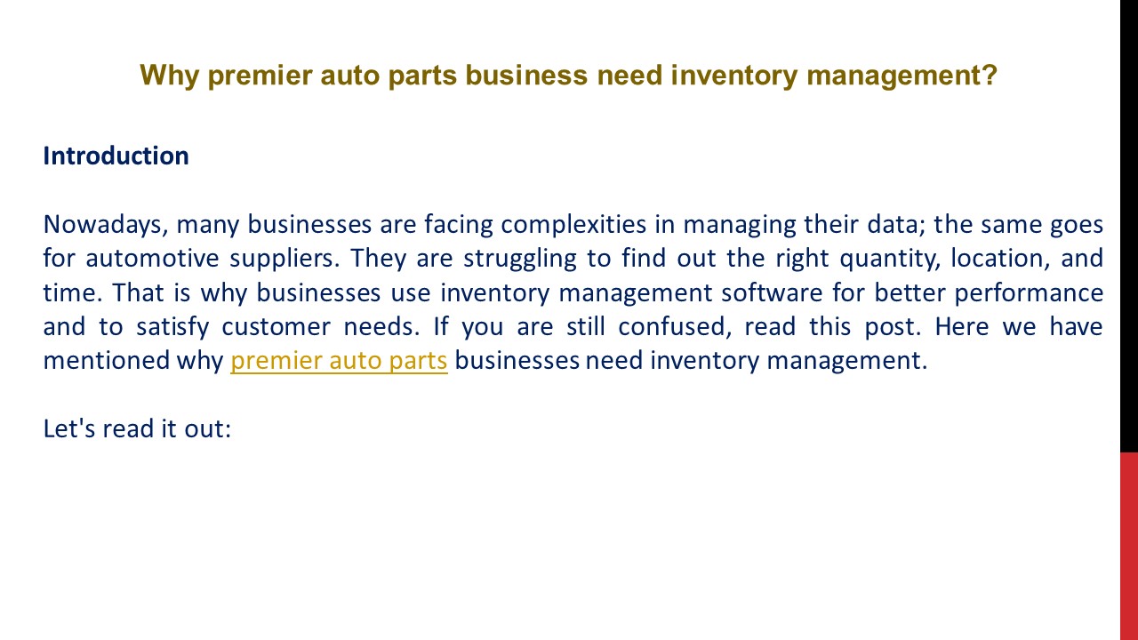 Title: Why premier auto parts business need inventory management?