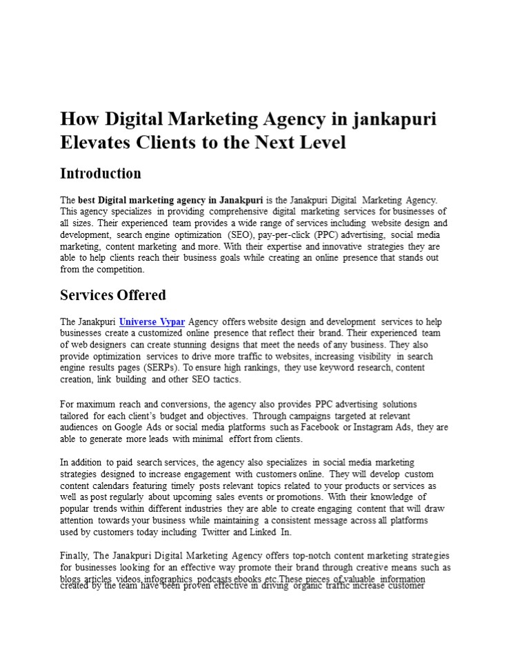 The Janakpuri Digital Marketing Agency offers