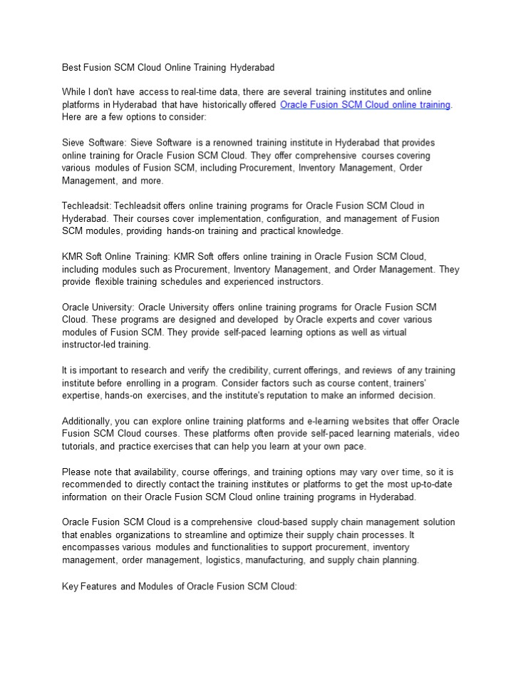 Hyderabad. Oracle Fusion SCM Cloud is a
