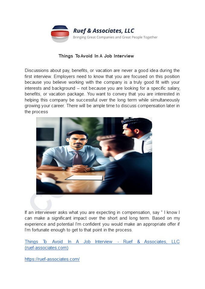 Title: Things To Avoid In A Job Interview