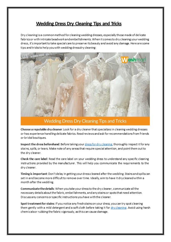 Title: Wedding Dress Dry Cleaning Tips And Tricks