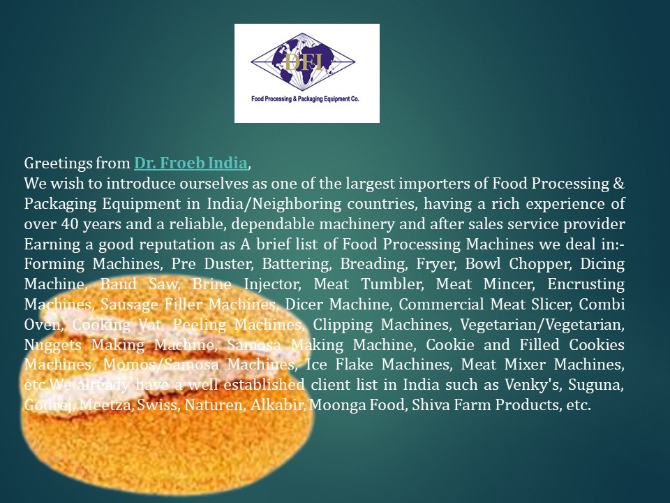 brief list of Food Processing Machines we deal