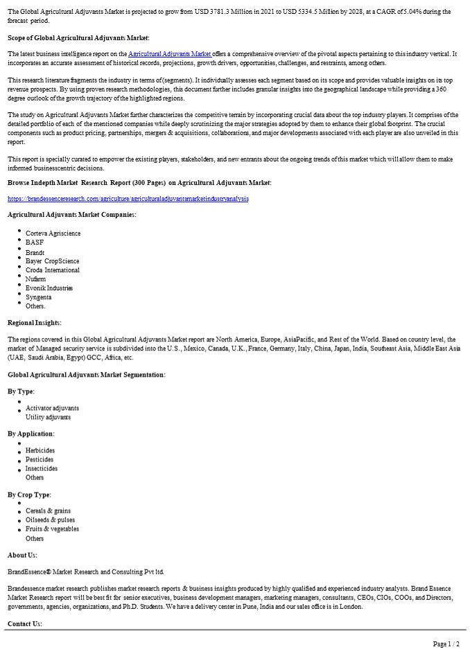 Agricultural Adjuvants Market The latest