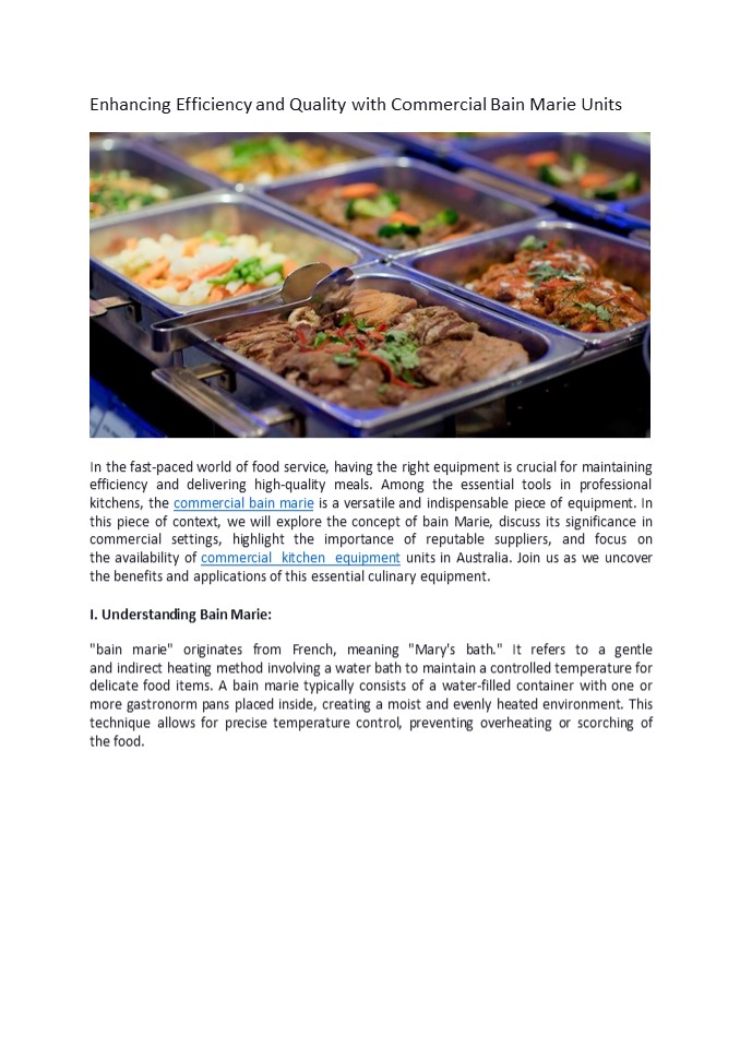 Title: Enhancing Efficiency and Quality with Commercial Bain Marie Units
