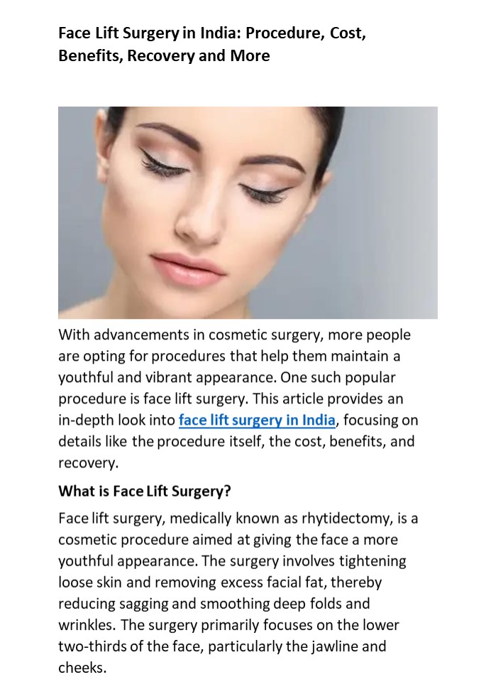 Title: Face Lift Surgery in India Procedure, Cost, Benefits, Recovery and More