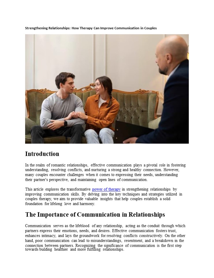 Title: Strengthening Relationships: How Therapy Can Improve Communication in Couples