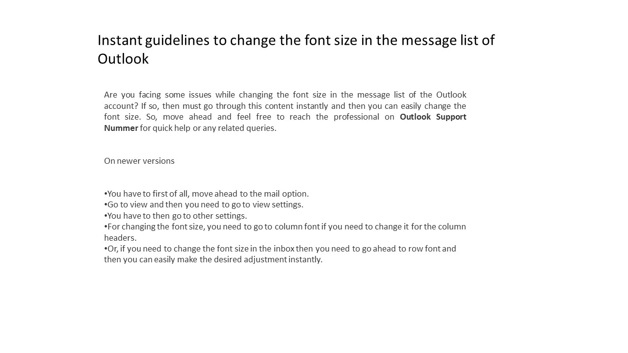 font size in the message list of the Outlook