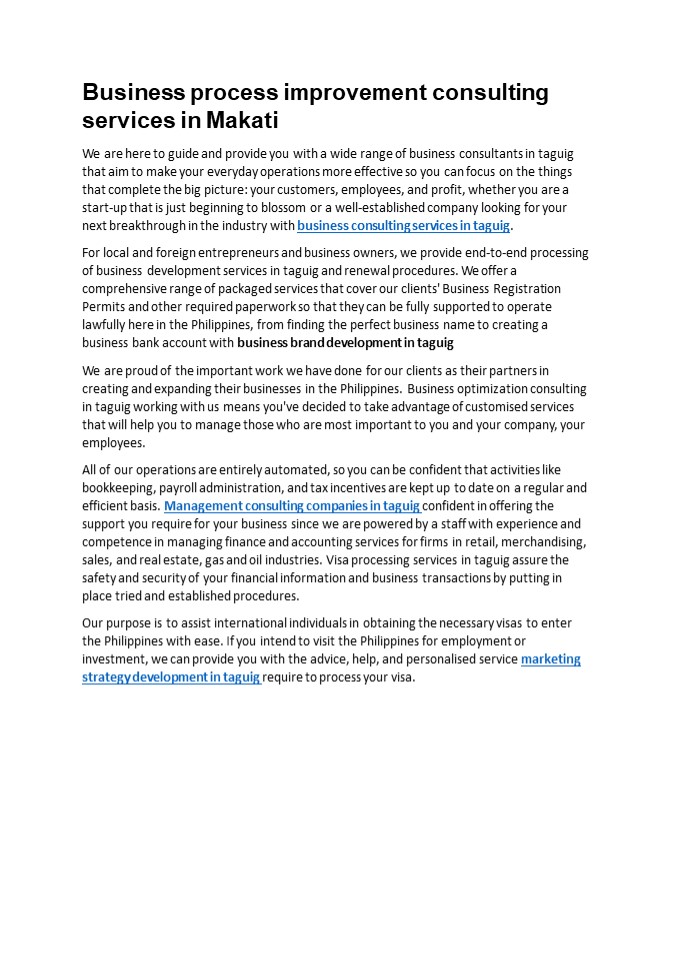 Title: Business Consulting Services & Filipino Visa in Makati, Philippines