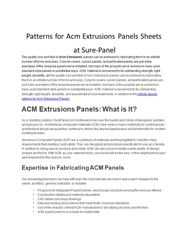 Title: Patterns for Acm Extrusions Panels Sheets at Sure-Panel