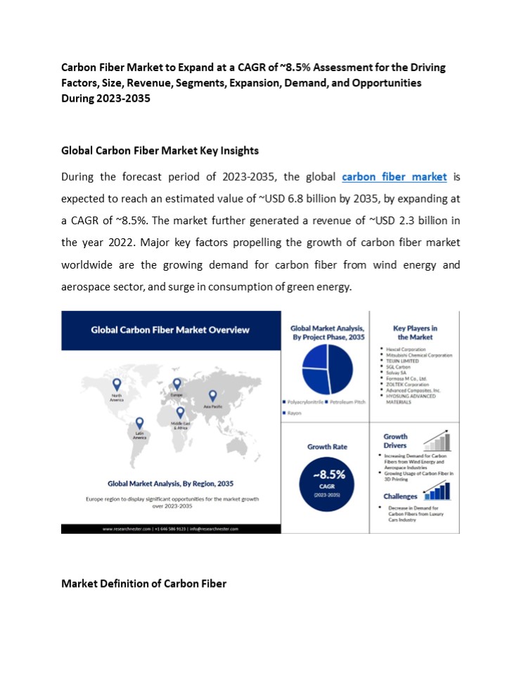 Title: Carbon Fiber Market Business Opportunities (2023-2035)