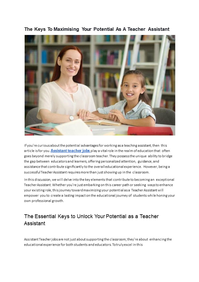 Title: Assistant Teacher Jobs-Keys To Maximise Your Teaching Potential
