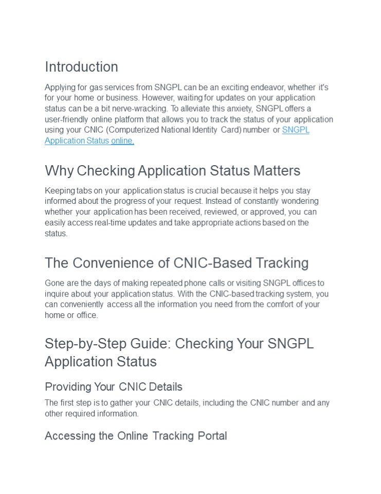 Title: SNGPL Application Status