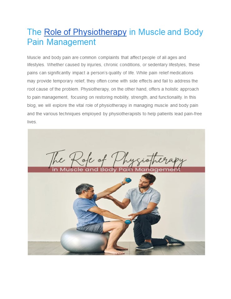 Title: Role of Physiotherapy in Recovery, Pain management, and muscle