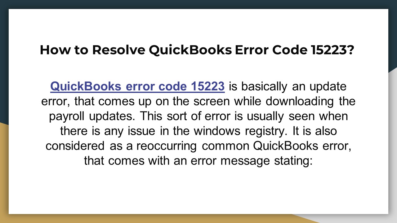 How to Resolve QuickBooks Error Code 15223? PowerPoint PPT Presentation