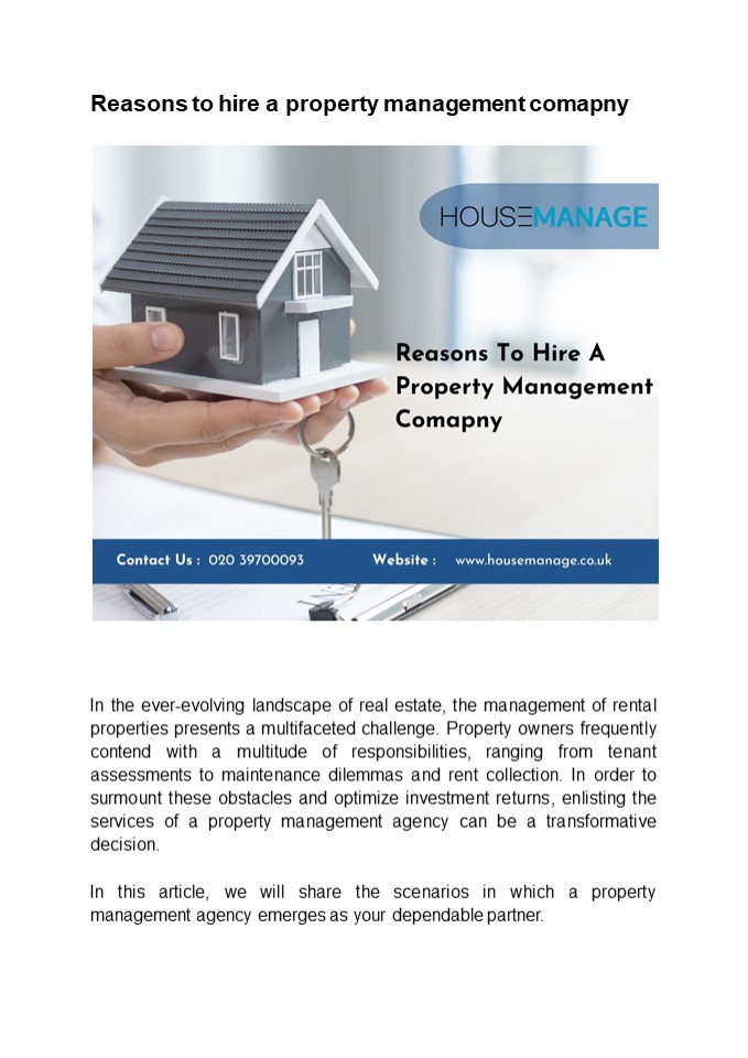 Title: Reasons to hire a property management Comapny