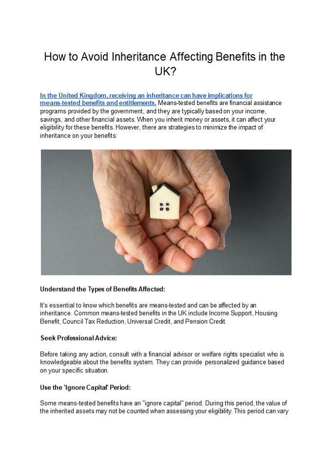 Title: How to Avoid Inheritance Affecting Benefits in the UK?