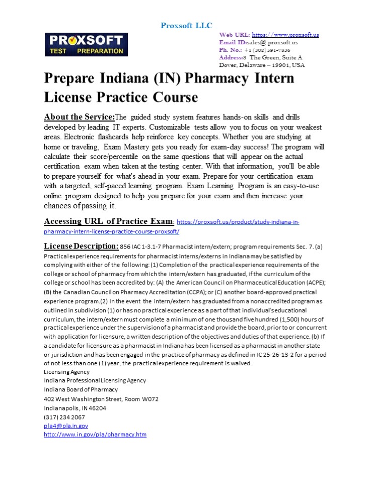 Title: Prepare Indiana (IN) Pharmacy Intern License Practice Course