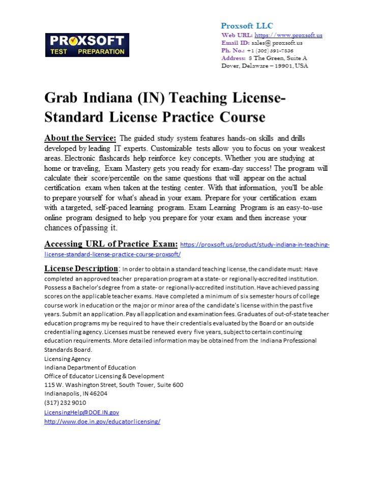 Title: Grab Indiana (IN) Teaching License-Standard License Practice Course