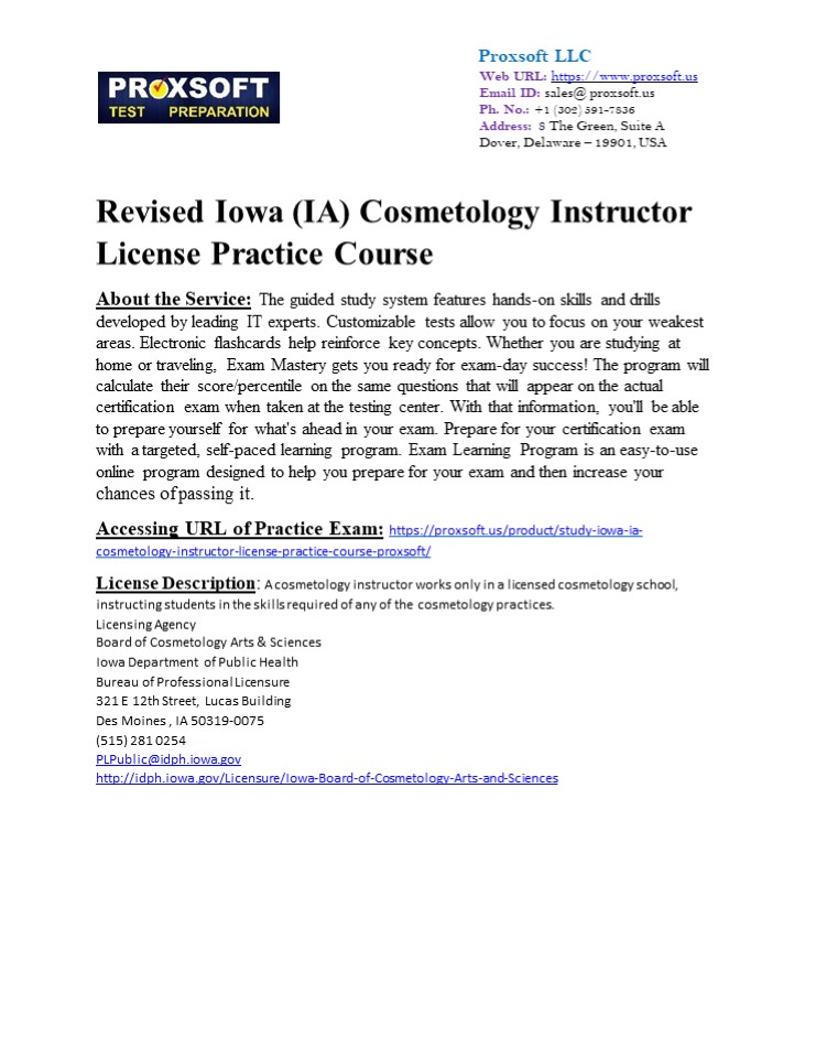 Title: Revised Iowa (IA) Cosmetology Instructor License Practice Course