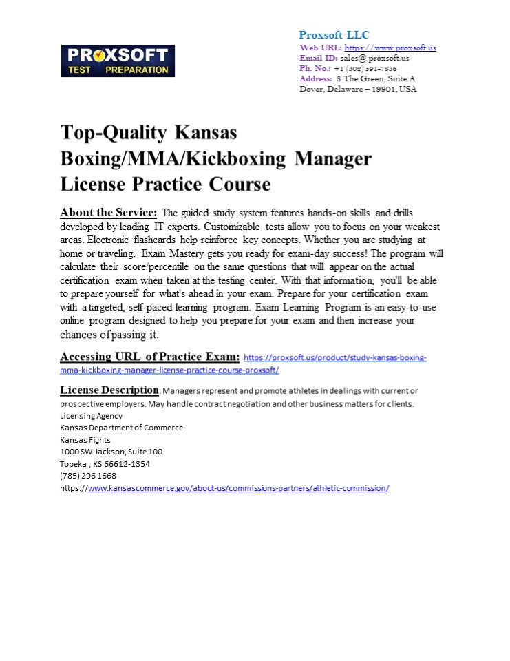 Title: Top-Quality Kansas Boxing/MMA/Kickboxing Manager License Practice Course