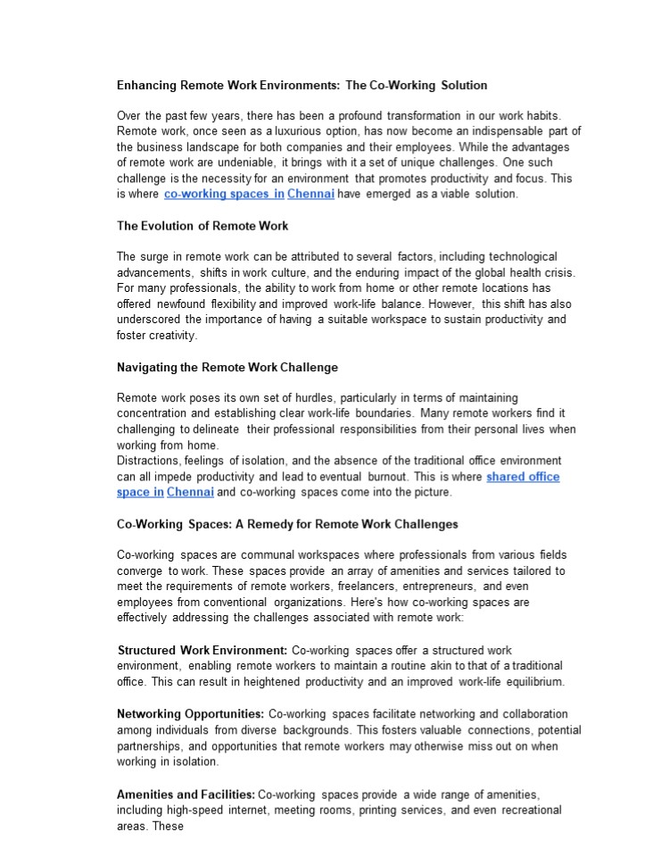Title: Enhancing Remote Work Environments: The Co-Working Solution