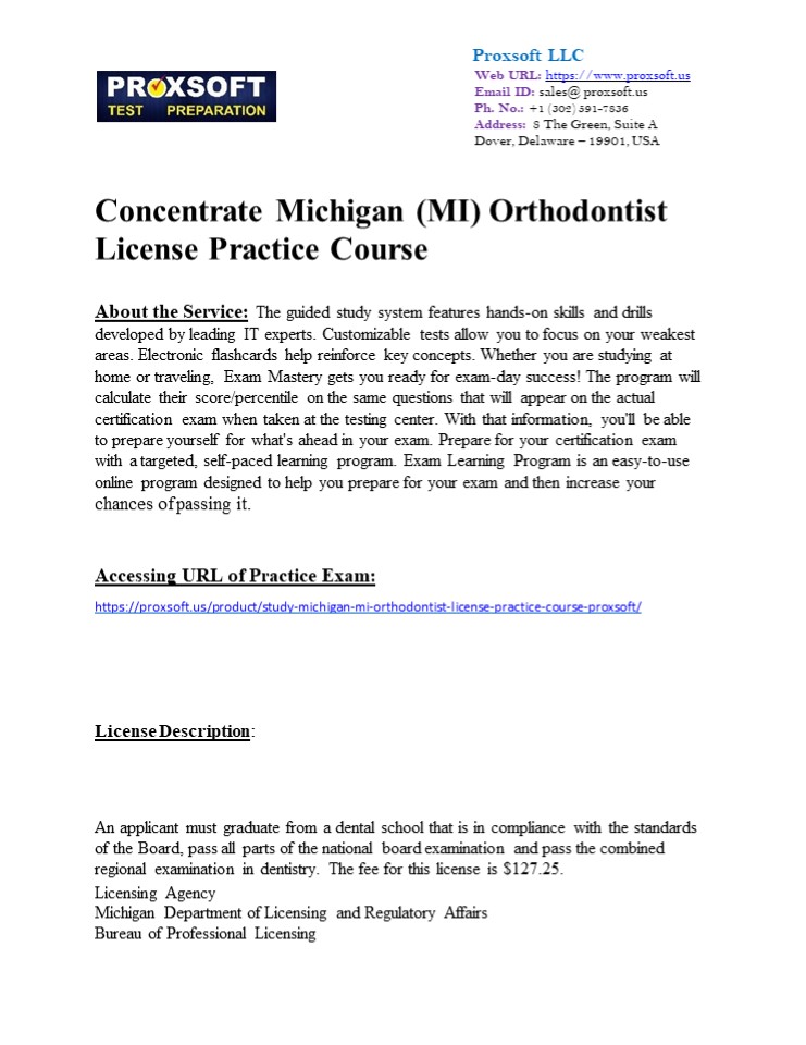 Title: Concentrate Michigan (MI) Orthodontist License Practice Course
