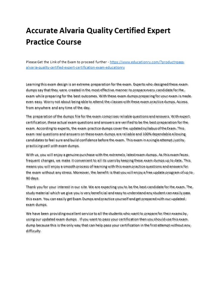 Title: Accurate Alvaria Quality Certified Expert Practice Course