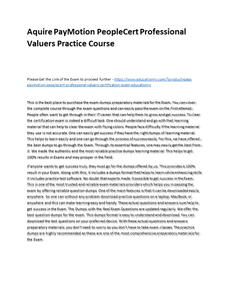 Title: Aquire PayMotion PeopleCert Professional Valuers Practice Course
