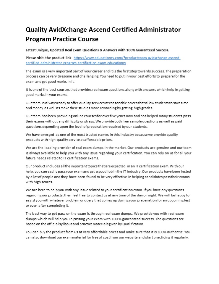 Title: Quality AvidXchange Ascend Certified Administrator Program Practice Course